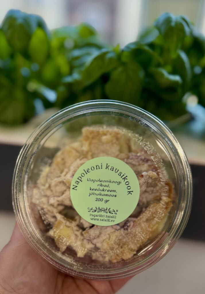 Meie Napoleoni tort koosneb 7-st võiga tehtud kiirlehttaigna kihist, mille vahel isetehtud vanillikeedukreem ning ühe kihina hapukas jõhvikamoos.