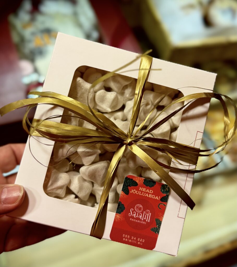 Munavalgest ja suhkrust käsitööna valmistatud õhuline pritsküpsis. Maitsestatud jõuluajale kohaste vürtsidega/kaneel, nelk, muskaatpähkel, ingver ja kardemon/